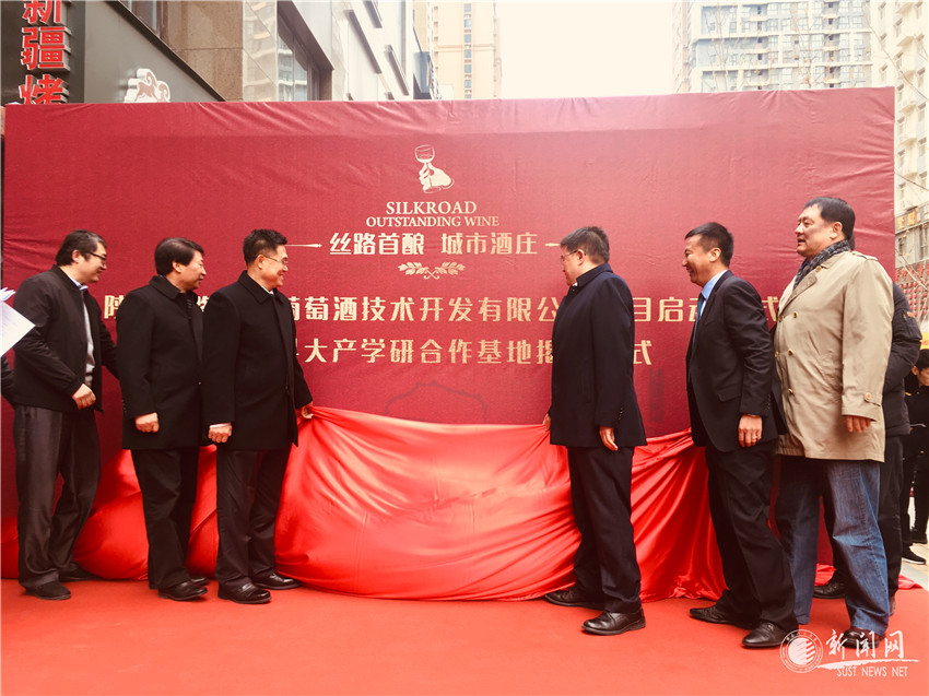 发布会上,徐明非、马建中和刘荣刚等共同为陕西丝路智酿葡萄酒技术开发有限公司与6165cc金沙总站检测中心产学研合作基地揭牌,并启动城市首酿酒窖项目。