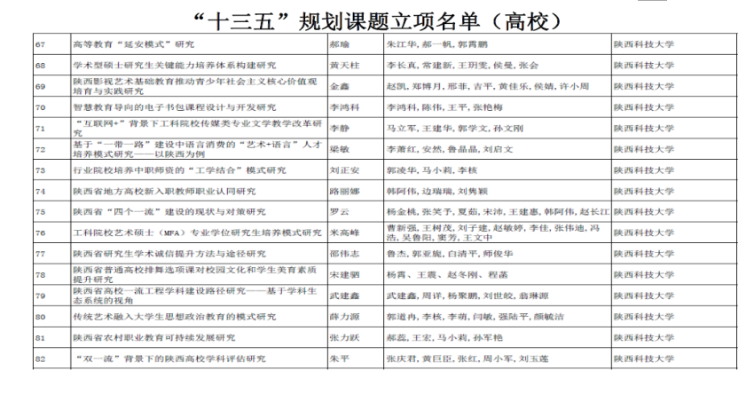 陕西省教育科学“十三五”规划2018年度课题和陕西省2019年度基础教育重大课题申报评审立项结果陆续揭晓,教育学院喜获丰收。