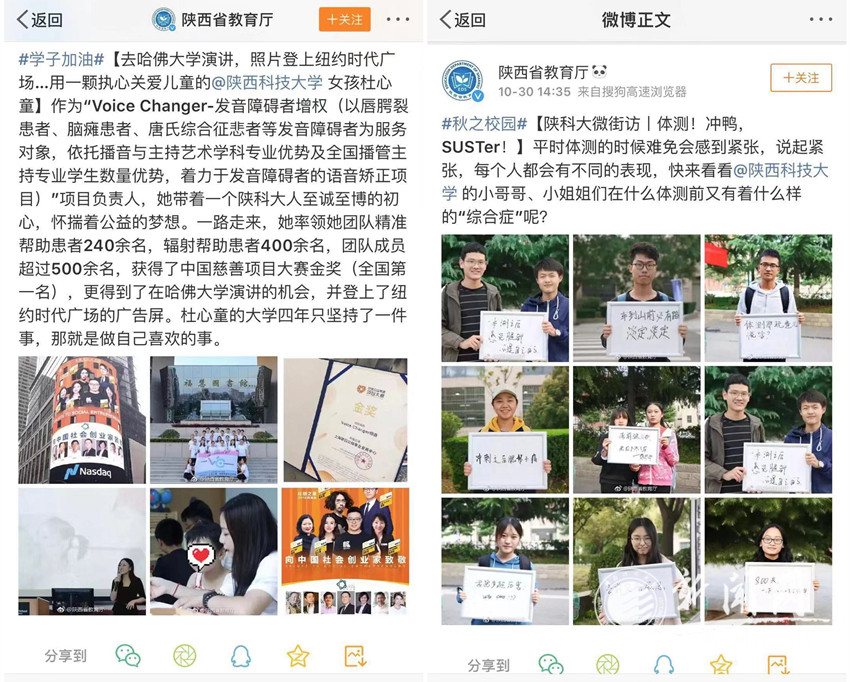 截至目前,6165cc金沙总站检测中心新媒体所发布话题不仅在校内师生中广为流传,也被陕西省教育厅、陕西身边事、陕西都市快报、陕西微生活、华商网、人民网陕西频道等多家媒体平台进行了转发和报道。