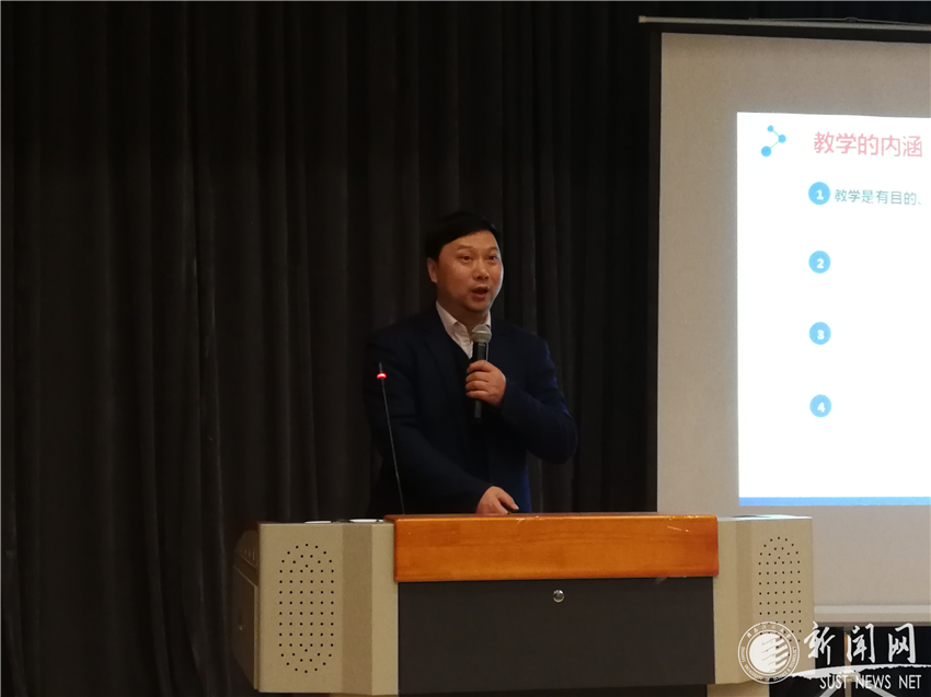 赖教授指出,教学要从引起学生的兴趣、掌握课堂气氛、把复杂问题简单化这三个方面出发,充分体现课堂教学的设计性,把课上出“个性”。做好课堂教学设计,一要有正确的教育理念以及明确的人才培养指导思想——立人教育、独立人格、探索精神、学习能力以及践行能力是教育的精髓;二要精心凝练教学内容,坚持教学与科研并重,提升教学内涵,让学生站在“你”的肩上认识世界;三要合理运用有效的方式与方法,由教学内容决定教学形式,注重思想传授。